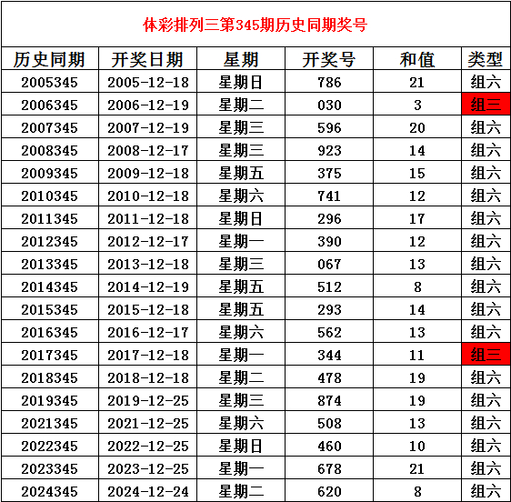 2025年12月25日陈设三第345期开奖,历史同手艺别开出奖号: