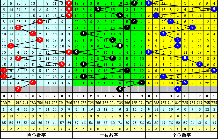 其中,号码奇偶比为25:32,偶数号码开出频率较高;号码大小比为30:27,大小 号码出现比例基本特地;号码012路比为26:15:16,0路号码判辨较热。