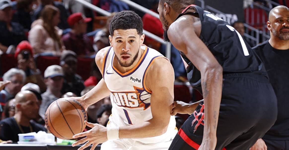 北京时候1月6日,NBA老例赛,太阳客场97-100惜败火箭。赛后,太阳球星德文-布克选定了媒体采访。