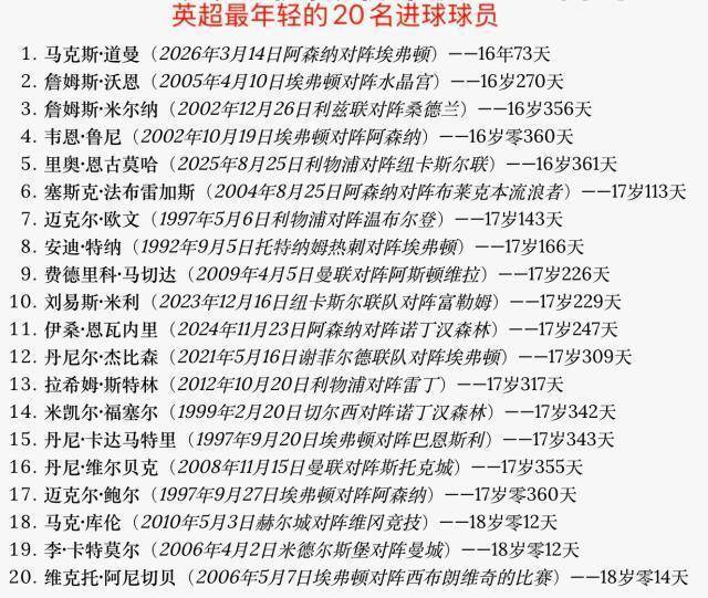 更绝的是,阿森纳绝杀的两个进球,是由替补上场的4名球员永别完成的助攻和进球。当日16岁73天的说念曼,成为英超历史上最年青的进球者。